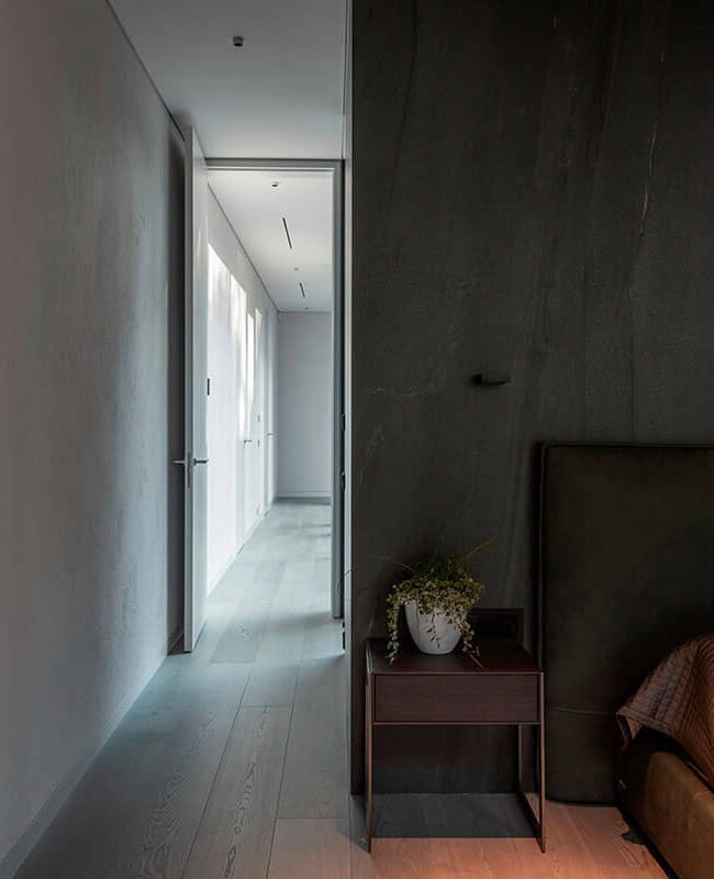 Laddove era necessaria la privacy, sono stati aggiunti più mattoni e, dove necessario, per aprirsi, è stato levigato e i piani di vetro sono stati lasciati in modo da far entrare il più possibile la sensazione della foresta nelle stanze.