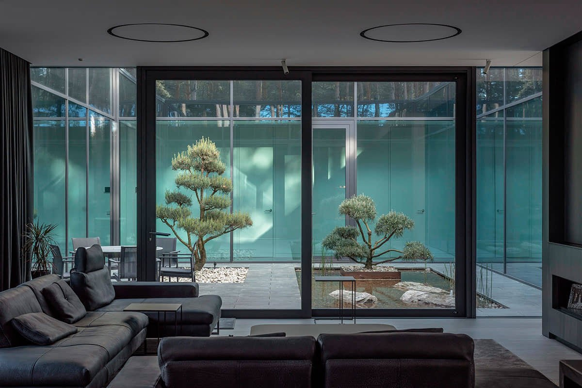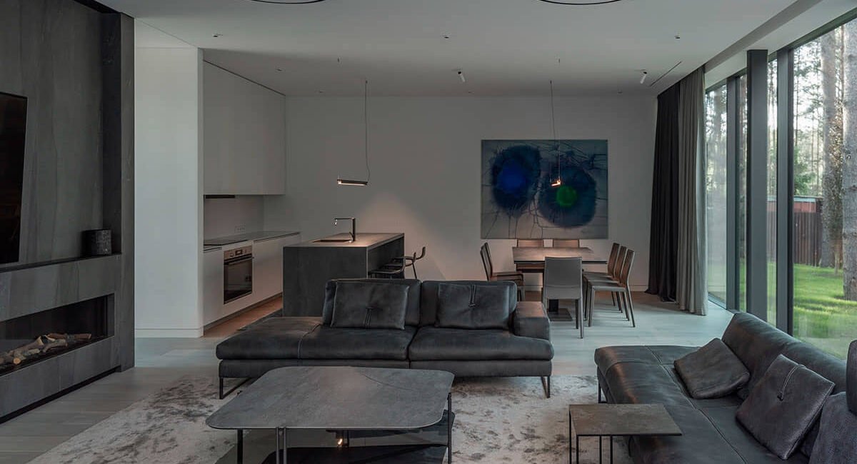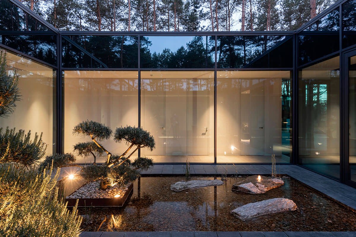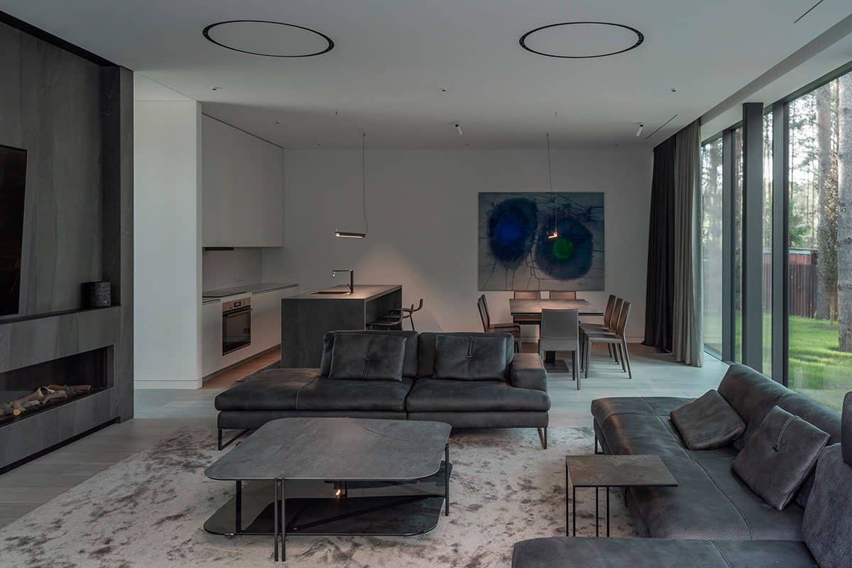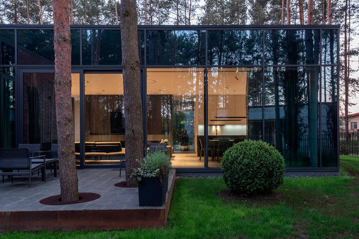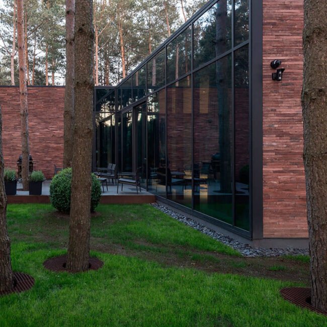 Il posto in sé è interessante, perché è una foresta, c’è un fiume nelle vicinanze e, sebbene non sia molto vicino, si sente la sensazione del fiume. Poiché la casa è un oggetto situato nel mezzo dell’isolato, è stata creata una distanza sufficiente dai vicini e dalla strada e allo stesso tempo la casa è stata naturalmente integrata nella struttura della foresta.