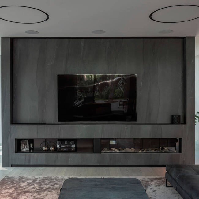 L’obiettivo era avvolgere la casa tra gli alberi, in ogni angolo, quella baia per creare una sorta di natura ingrandita, lasciando gli alberi o piantando qualcosa di nuovo, quindi a seconda delle esigenze funzionali o ambientali, la casa era o rimpicciolita o i suoi confini attraverso il centro dei fianchi della casa furono ampliati. Con il forte effetto dell’integrità verticale dei tronchi marroni della foresta, si è cercato di rendere l’estetica della casa il più terrosa possibile, l’edificio non da murare, ma come un mucchio di mattoni da impilare su una piattaforma di cemento.