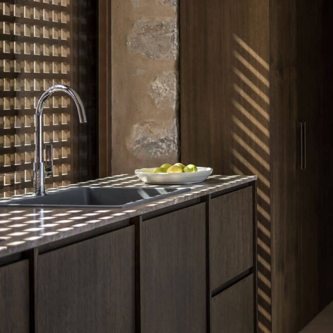 Sebbene la composizione principale sia espressa nella forma delle torri, le loro estensioni che compongono il resto del complesso non esistono autonomamente all’interno del lotto, ma sono piuttosto riunite nel suo insieme, riecheggiando le forme architettoniche consolidate della regione , ma fornendo così anche un’interpretazione moderna di quelle stesse tipologie tradizionali. Le case sono progettate in modo da poter vivere “dentro” e “fuori”, con spazi ugualmente dinamici previsti sia all’interno che all’esterno.